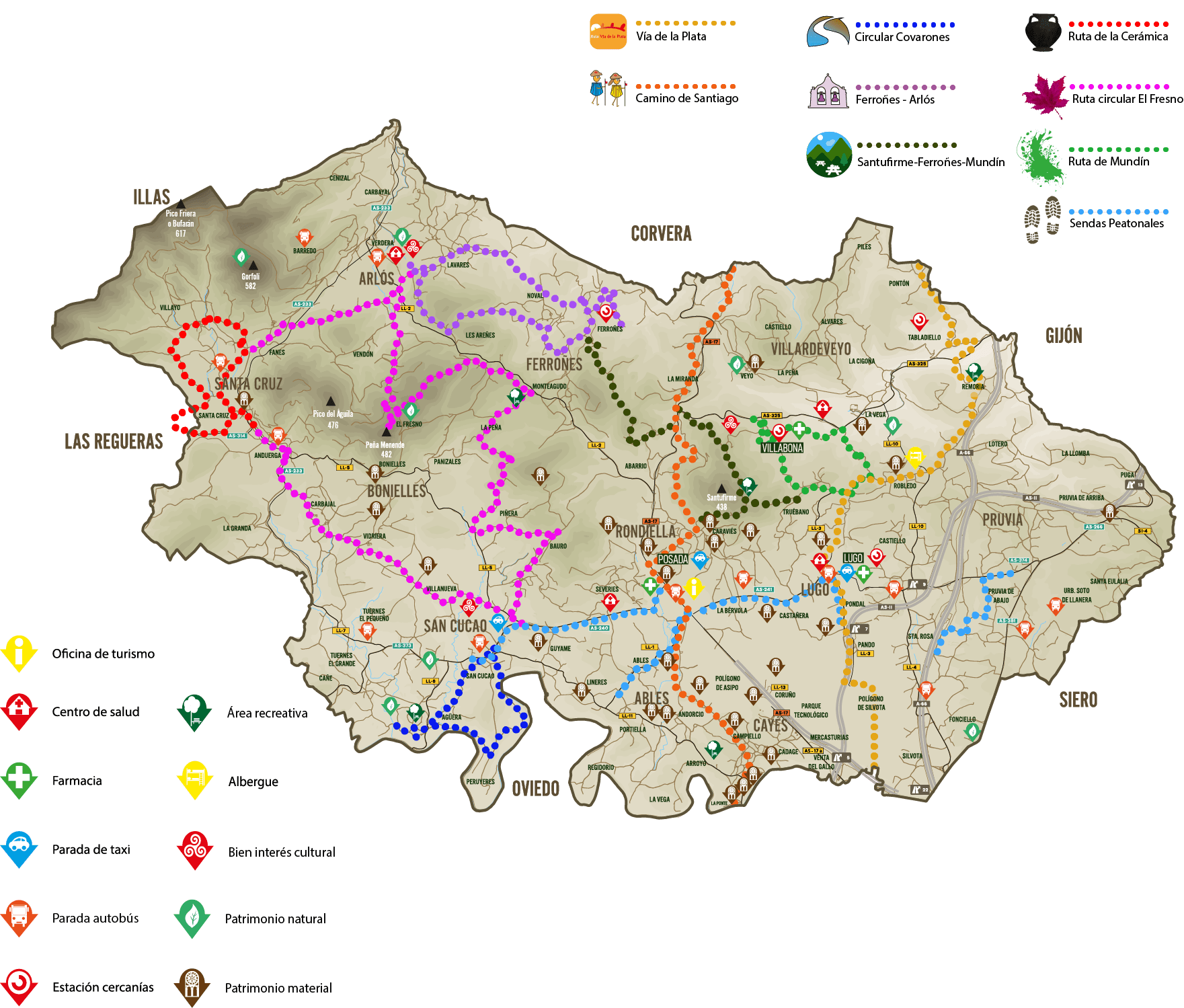 Descubre nuestros emblemáticos picos, los tejos centenarios, el molino hidráulico más antiguo de Asturias y todos los paisajes característicos que te ofrece Llanera.